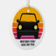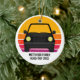 Cool custom road trip Christmas ornament for a spring break or summer vacation souvenir for your family or friends. Personalize with your last name or group above the retro sunset and car silhouette. Perfect souvenir for a trip to a cottage or across the country. Drive off into the sunset.