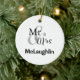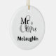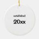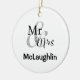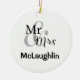Ornamento de vacaciones personalizado para la pareja feliz con apellidos y año boda. En este ornamento aparecen tres líneas de texto de personalizable.