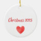 Decoren su árbol con este diseño "Mr. and Mrs.", que incluye una acuarela de bonito de dos cardenales rojos. Los pájaros son cara a cara, encaramados en verduras de temporada, con un corazón entre ellos. Debajo de "Mr. and Mrs." está escrito en divertida tipografía moderna y usted puede personalizar con los nombres de la pareja. En la parte de atrás hay un pequeño corazón rojo coordinador y se puede añadir el año de los Navidades u otro texto. Perfecto para parejas recién casadas.