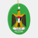 Celebrate Palestinian identity and heritage with this elegant State of Palestine Coat of Arms Ceramic Ornament. Featuring the powerful Eagle of Saladin—an iconic symbol of Arab unity and strength—this ornament displays the Palestinian flag on a central shield, flanked by the name of the state in traditional Arabic calligraphy.