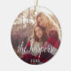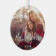 El elegante y sencillo ornamento de vacaciones cuenta con una foto de cada lado con el nombre de su familia o la leyenda del personalizado colocada en letras de caligrafía blanca. Personalizado con el año que viene.