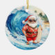 Surfing Christmas with Santa Claus surfer Ceramic Ornament