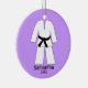 Un adorno navideño de artes marciales personalizadas. Perfecto para Taekwondo, Karate, Judo y más. Ideal para niños o adultos. Fácilmente personalizable con un nombre y un año. Mostrado en morado.