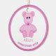 Adorno De Cerámica Teddybear rosado con copo de nieve personalizado