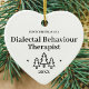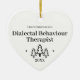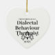 Primera Navidad como un adorno de corazón del terapeuta del comportamiento dialectal para un compañero de trabajo, amigo o miembro de la familia. Elegantes adornos de cerámica de porcelana en blanco con letras negras. Con árboles y estrellas navideñas.
