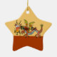 Un caprichoso ilustracion de dragón personalizado está en marrones, dorados, naranjas, con un azul pálido en la parte inferior de un lado de este adorno en forma de estrella. En el lado dos hay un dragón verde morado con el texto: "Thar Be Dragons". Puede editar texto para crear su propio regalo personalizado. Necesita ayuda, envíe un correo electrónico a lilly@lillyarts.com