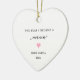 Celebrate the joy of family with our personalised ceramic ornament, that captures the essence of love and connection, making it a perfect addition to your holiday decor or a thoughtful gift for a cherished new mother. Easily customise and make it 100% your own. This design features a pretty hand drawn pink heart and includes a gold ribbon. The design is minimalist, fresh clean and white. This simplistic stationery, is modern elegant and classy, with a chic yet traditional touch. This design is also available for other events. Create a coordinating theme for your memorable day with our matching stationery and décor, all available for an additional low cost. All my invitations and stationery are designed with love, customised 100% satisfaction guarantee!