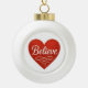 Pretty minimalist design of a red heart with the word "Believe" in white. This encouraging ornament will bring joy to you and others. Fun inspirational gift for a someone you know.