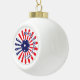 Árbol navideño bauble con elementos de pickleball rojo y azul americano sobre fondo blanco. Perfecto como regalo para un jugador de pickleball americano. ¡Feliz uso y mejores deseos para tus futuros juegos!