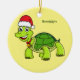 Adorno De Cerámica Tortuga alegre lindo con sombrero de Santa