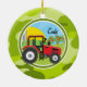 Adorno De Cerámica Tractor rojo; camo verde brillante, camuflaje