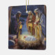 Share the true meaning of Christmas with this stunning flat holiday card featuring a traditional Nativity scene illustration. This artistic design depicts the Three Wise Men offering gifts to the newborn baby in the manger under a bright Star of Bethlehem in a peaceful, rustic stable. The deep colors, starry night sky, and dramatic light create a reverent, evocative, and timeless image. This card is an elegant and meaningful way to send Christmas greetings and wishes of peace and joy for the season.