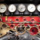Los conductores de los trenes de vapor miran desde la placa de pie de los indicadores y controles del tren.