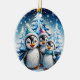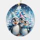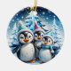 Tres adorables pingüinos están parados en festivos gorras de invierno y coloridas bufandas. Sus grandes ojos redondos brillan de alegría, mientras que sus esponjosas campanas blancas contrastan con el brillante árbol de Navidad azul decorado con luces brillantes. Los pingüinos sonríen alegremente y parecen listos para celebrar la magia de la temporada navideña. A su alrededor, delicados copos de nieve bailan a través del aire, mientras las estrellas brillan en el cielo, creando un ambiente cálido y festivo. Este diseño captura perfectamente el espíritu de los Navidades - lleno de alegría, amistad y maravilla de invierno!