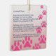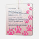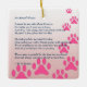 Memorialize la memoria de su mascota con este ornamento cuadrado. Cuelgue en un lugar en donde pueden ser recordados. Las palabras confortantes de este poema deben ayudar a cualquier persona que se esté afligiendo la pérdida de un animal. Los animales son tal parte de nuestras vidas que es un momento difícil en que pasan. La prosa aquí permite que los representemos en una forma perfeccionada y que entendamos que están siempre con nosotros. Este diseño es rosado para un animal femenino.