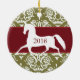 Este clásico y elegante navidad ecuestre o diseño temático de caballos de vacaciones cuenta con un caballo blanco trotando con un patrón de damasco de bonito y un cartel rojo en el medio para un aspecto muy festivo. ¡Este regalo equino es perfecto para las personas que aman caballos de cualquier edad!