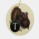 ¡Modifique este bonito para requisitos particulares, diseño temático del otoño con una letra de su opción! Un ilustracion de un pavo salvaje en la hierba honra este ornamento con monograma. El monograma, en una fuente clásica del trazo de pie, se centra en un círculo negro al lado del pájaro. ¡Es perfecto para la acción de gracias! Hace un gran regalo para los cazadores y los amantes de naturaleza, también.