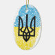Identidad ucraniana. Por todos los ucranianos. Símbolo de Tryzub sobre un patrón de huellas digitales de la bandera de Ucrania.