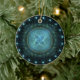 De una película de ciencia ficción, este impresionante adorno de cerámica redonda tiene una imagen, a ambos lados, que recuerda a la parte inferior de un OVNI. Vea toda la colección Gemstones & Medallions Ornament en la sección HOME.