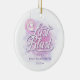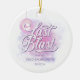 Elegante diseño de adorno personalizado de Despedida de Soltera Disco en hermosos colores gradientes desde lavanda hasta periwinkle y rosa con una bola de discoteca funky, fuente retro glamorosa y luces de discoteca brillantes, fondo de acuarela. Este diseño elegante y sofisticado se adapta fácilmente a cualquier cena especial y/o evento de baile. Busque ID928 para ver otros productos de esta colección de moda.