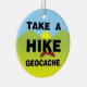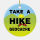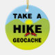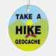 Hacer una caminata, un texto geocache, con el K en la caminata usando unas zapatillas todo contra un paisaje amarillo, verde y azul es un diseño único de geocalización para los amantes del cachet en cumpleaños, vacaciones y eventos de geocalización.