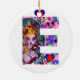 Letra e alfabética diseño inicial con corazón.Espectacular y pintura artística con confeti colorido. Amor mítico entre Harlequin y Columbine, pintura acrílica inspirada en máscaras de plumas venecianas y Commedia dell'arte - Venecia. Colores verdes color rosa rosa violeta claro.