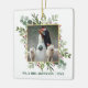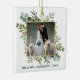 Elegante color de agua verde invierno Mr. y Mrs. Boda Photo New Christmas Ornament incluye hojas de eucalipto y bayas rojas. Texto verde. Marco dorado.