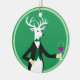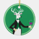 Un ciervo muy cortés vestido de fiesta listo para brindar por sus amigos con su copa de vino. Personalice la parte posterior de este ornamento con 3 líneas de texto de su elección. ¡Es fácil de hacer! ¡El adorno es un regalo de acogida, un adorno de botellas o uno para colgar en tu árbol!