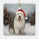Adorno De Cerámica Viejo pastor inglés en Navidades de nieve