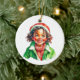adorno navideño personalizado con un adorable elfo afroamericano retro en un gorra. La parte posterior se puede personalizar con un mensaje personalizado.