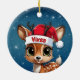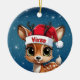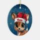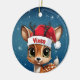 Vixen! Celebrate the holiday season with this festive round ceramic red ornament featuring an endearing woodland forest animal cartoon graphic of a cute baby reindeer wearing a Santa hat. Perfect deer with antlers for decorating your tree or as a thoughtful gift, this whimsical doe decor makes a cherished keepsake for years to come. Customize by changing the text, the font, the font color, or remove the text. You can even transfer this design onto other products. Enjoy this design your way!🎄🦌
