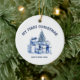 A beautiful, handcrafted ceramic ornament, perfect for commemorating your baby's first Christmas. This unique keepsake features a charming watercolor design, allowing you to personalize it with a cherished photo. It's a wonderful way to create a lasting memory and add a touch of warmth to your holiday decorations.