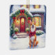 Share festive holiday cheer with this beautifully illustrated Christmas card featuring a playful Basenji in front of a charming snow-covered townhouse adorned with seasonal decor. Rendered in a soft watercolor style with glowing window light and gentle snowfall, this cozy scene is perfect for dog lovers. The blank interior allows space for personal messages, making it ideal for holiday greetings, thoughtful gifts, and breed-themed stationery.