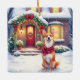 Adorno De Cerámica Watercolor Basenji Townhouse Christmas Holiday