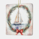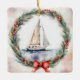 Adorno De Cerámica Watercolor Christmas Sailboat In Wreath