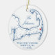 Celebra tu primera Navidad como pareja casada con este adorno cerámico de sake con un impresionante tema del mapa de Cape Cod, perfecto para conmemorar a tu boda en el Wequassett Resort en Harwich, MAMÁES. Personalízalo con los detalles de su boda en la parte delantera y una preciada foto en la parte trasera. Este elegante adorno es un recordatorio intemporal de su día especial y una hermosa adición a su decoración de vacaciones. Obra de arte de Diseños de Mapa Costero.