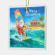 Windsurfing Santa Beach Christmas Card Ceramic Ornament