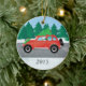 Adorno De Cerámica Wire Fox Terrier Driving a Christmas Car