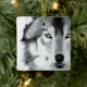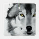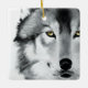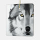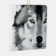 Retrato de lobo hecho todo en blanco y negro, pero los ojos son de color.