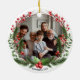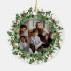Aprecie sus recuerdos de vacaciones con este adorno de Navidad de foto familiar personalizado. Rodeado por una hermosa corona de hojas huecas, bayas rojas y vegetación, este adorno ofrece la manera perfecta de mostrar la foto de su familia y conmemorar el año. Este adorno, un maravilloso recuerdo de su árbol o un regalo para sus seres queridos, capta el espíritu festivo de la temporada con un toque personalizado.