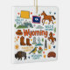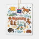 Commemorate your trip to the state of Wyoming with this modern keepsake Christmas ornament, featuring hand-drawn style illustrations of iconic food, animals, landmarks, landscapes, and culture. Personalize the back to mark your US adventure and create a memory you'll hang up on the tree for the Holidays year after year.