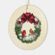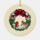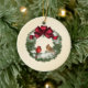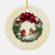 Un fondo crema, decorado con una corona de fuego recubierta de nieve, con un gran arco de satén rojo, y dos lindos pájaros sentados sobre él. Cuelga en tu árbol, decora un regalo o una corona con él. Incluso puedes personalizarlo añadiendo tu propio texto.