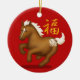 This ornament features the zodiac horse paired with the gold fortune character, creating a festive accent for Lunar New Year decorating. The back can be customized with a short message or name, making it suitable for family celebrations, party favors, gifting, and as a keepsake for those born under this sign.