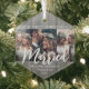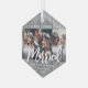 Celebra una feliz primera fiesta como señor. Y la señora con un collage de fotos de personalizado 3 "Nuestra primera Navidad casada" color gris imitación hexágono de madera de imitación. Todos los textos e imágenes de esta plantilla son fáciles de personalizar. Si se prefiere, la tipografía del guión puede leer "Juntos" o "Comprometidos" (IMAGEN DESIGN TIP: Una manera fácil de centrar una foto exactamente como se quiere es recortarla antes de subirla al sitio web de Zazzle). El moderno diseño de la casa de campo presenta madera de imitación gris rústica, caligrafía de escritura a mano, nombres de tipografía y año de máquina de escribir y tres fotos de su elección. Este toque único y moderno añade un toque elegante a la decoración casera de Navidad. Hace una linda idea de regalo boda para la novia y el novio.