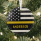 Ornamento delgado de la línea de oro para 911 despachadores y policías despachadores. Personalice este ornamento de dispatcher con nombre y año. Este regalo personalizado de distribuidor es perfecto para la apreciación de los despachadores de policía, 911 regalos de agradecimiento de los despachadores y regalos de jubilación de los despachadores o favores de partido. Ordenar a estos despachadores navidad ornamentos mayoristas para el departamento de policía o la estación de bomberos. DERECHOS RESERVADOS © 2020 Judy Burrows, Black Dog Art - Todos los derechos reservados. Dispatcher 911 Personalizado Línea de Oro Delgado USAFlag Glass Ornament