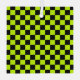 A vibrant checkerboard pattern with alternating neon yellow and black squares creates a striking geometric design, conveying a bold and energetic tone.