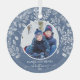 El adorno de árbol de Navidad de cristal redondo muestra su foto rodeada de hojas blancas, bayas y puntos sobre un fondo azul. TIP: Sube una foto de alta resolución que muestra a los niños en el medio. Los adornos hacen regalos memorables para la familia y los amigos o crean para ustedes mismos. MÁS colores en nuestra tienda.