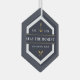 Un regalo perfecto para los propietarios de los barcos, este adorno navideño náutico en azul marino y blanco clásico presenta el nombre de tu barco, el año establecido y el registro del barco en una disposición geométrica moderna con ilustraciones de ancla y de oído.