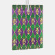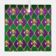 joyas, fondo del Mardi Gras de rhombus violeta y verde, lirios dorados decorados.