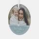El adorno de fotos de Navidades dulces y simples presenta un diseño minimalista, con el nombre de su familia y el año en un tipo de letra serif limpio y clásico sobre un suave fondo azul. Un pequeño arco debajo de tu foto completa el diseño.